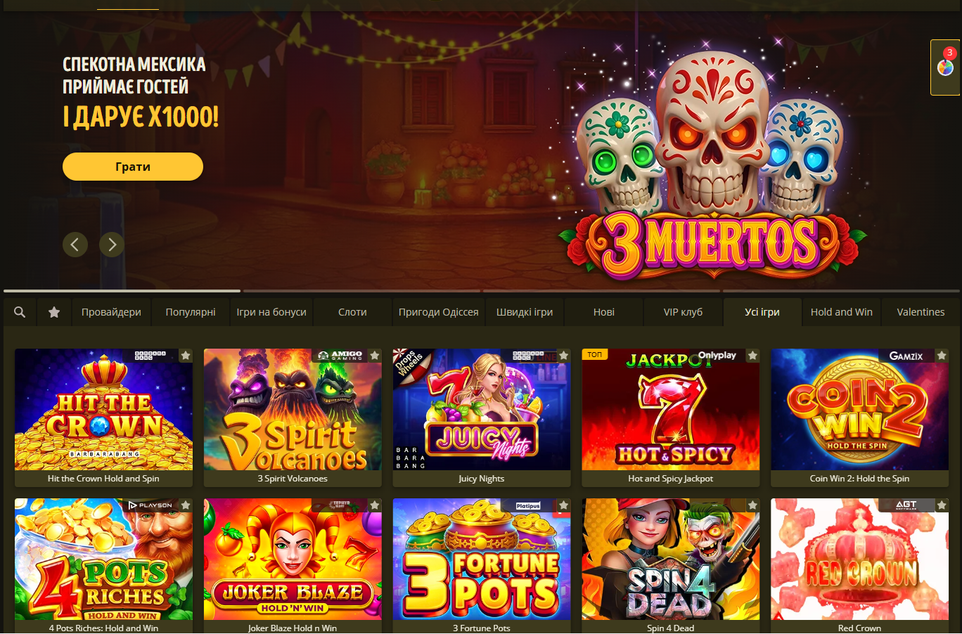 - На робочому столі кнопка "Вхід" або "Логін" над баннерами популярних ігор